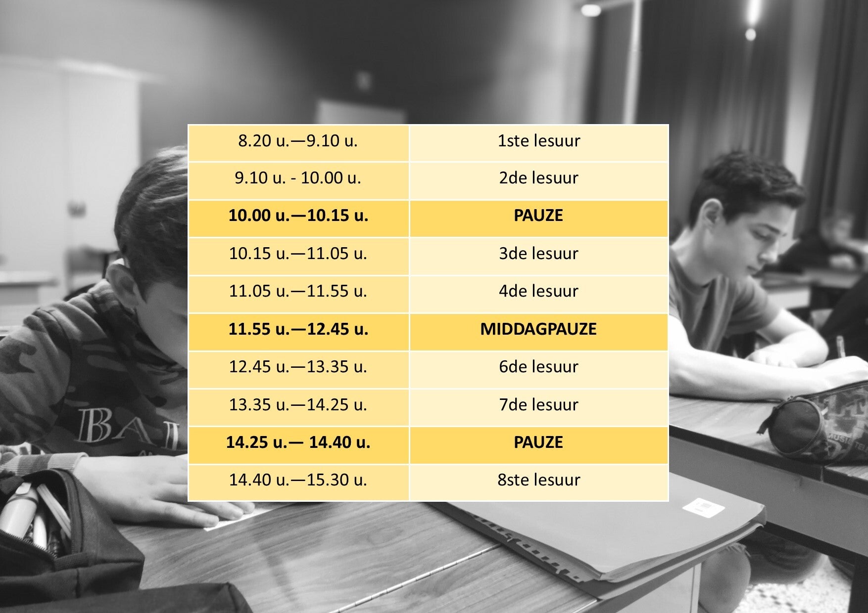 Wanneer zijn de vrije dagen voor de leerlingen?